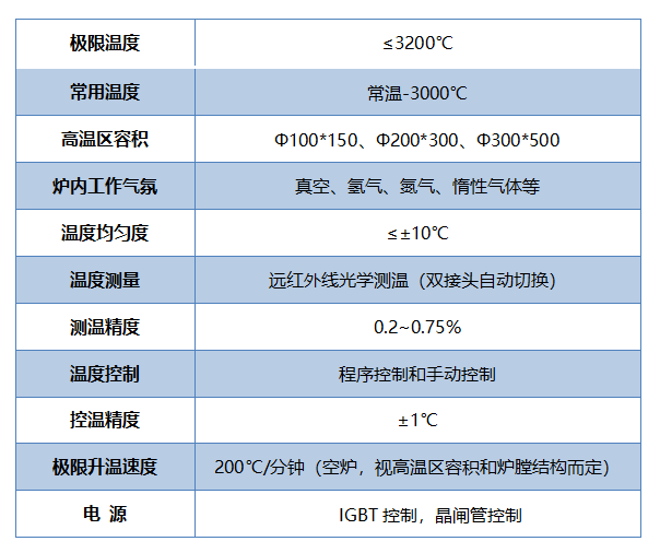 達到極限溫度3200℃,常用溫度3000℃的高溫爐體,滿足各種材料的燒結和石墨化處理。