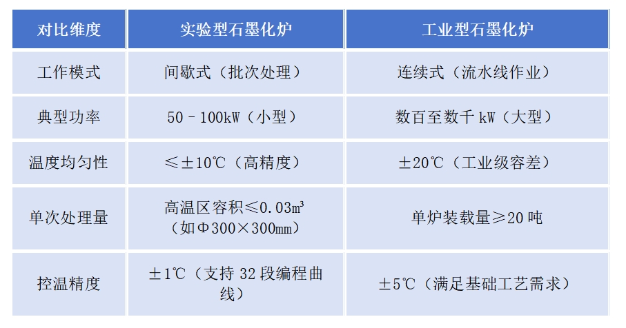 實驗型與工業型石墨化爐在應用場景、設計參數及工藝控制等方面存在顯著差異,主要區別總結如下: