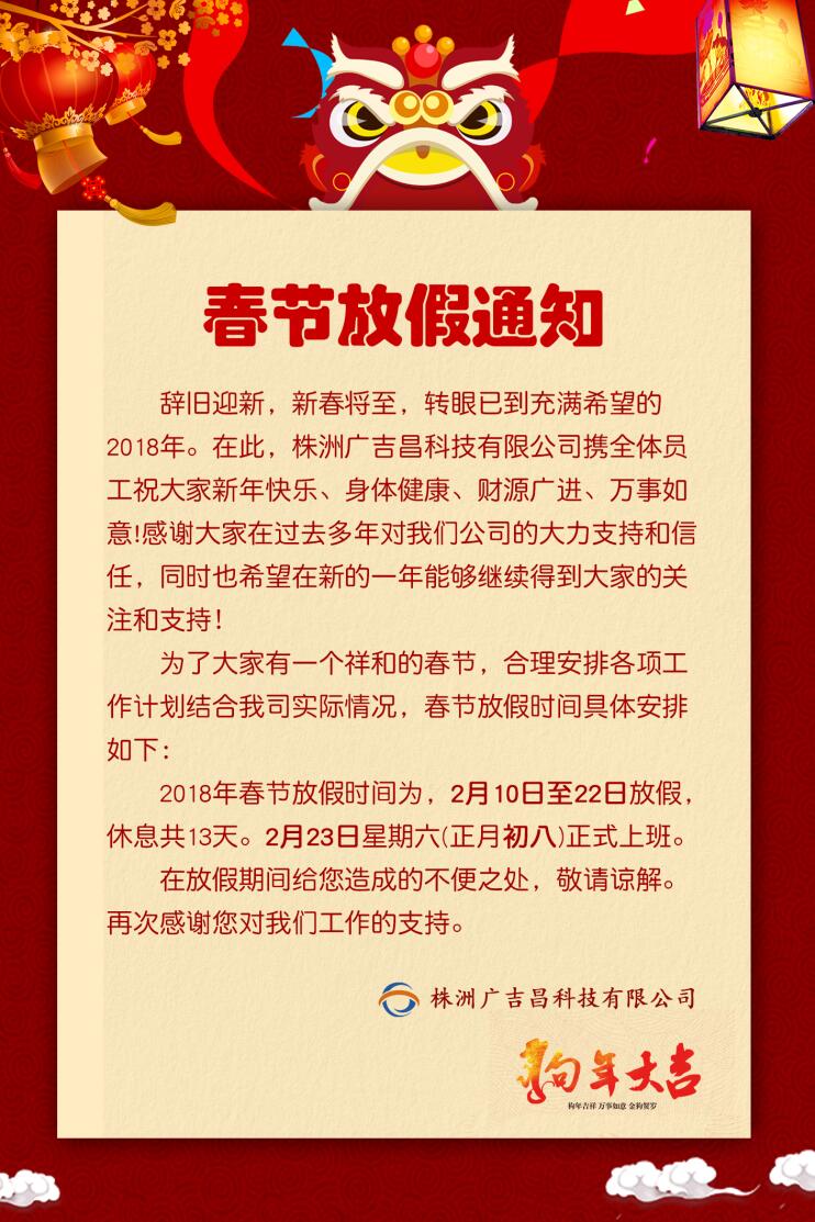 廣吉昌科技2018年春節放假通知